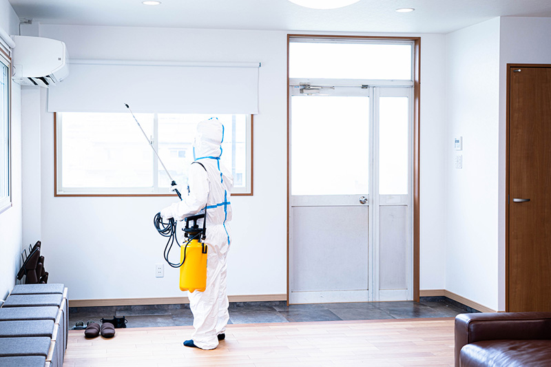 感染症やウイルスの拡散を防ぐため、専用薬剤による徹底した除菌処理を行います。